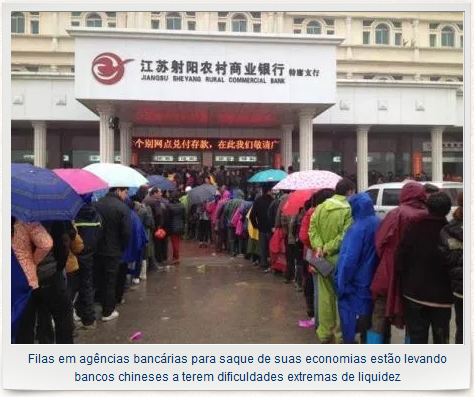 O resultado de tudo isso, previsivelmente, foi um colapso da confiança nos bancos chineses e seu próximo passo lógico: a corrida para saques nos bancos. Nos episódios mais recentes, as autoridades intervieram no mês passado para interromper a operação de bancos em dois credores locais em Hebei e Shanxi. Em 11 de julho, os poupadores correram para sacar dinheiro do Banco Hengshui, também com sede em Hebei, antes que a polícia o parasse.